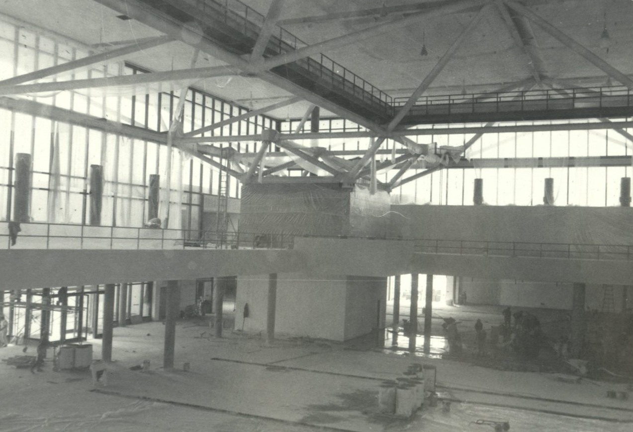 $6 million was spent on the building itself, and the remaining $3 million went toward interiors and fixtures. It’s probably worth noting here that the headline seen in the video where 175 men were reported as “swallowed up” by the Center was simply a reference to the large job site required by this $6 million project.