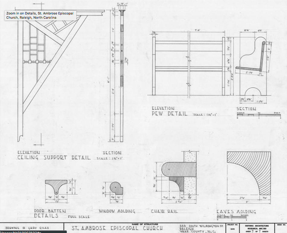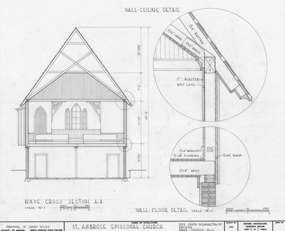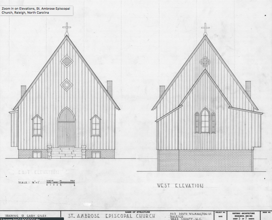 The church’s official history says the worshipping community at Saint Ambrose became a separate congregation in 1896, about a year after work began on the new on-campus St. Augustine’s Chapel. That on-campus chapel still stands today, and is a designated Raleigh Historic Landmark.