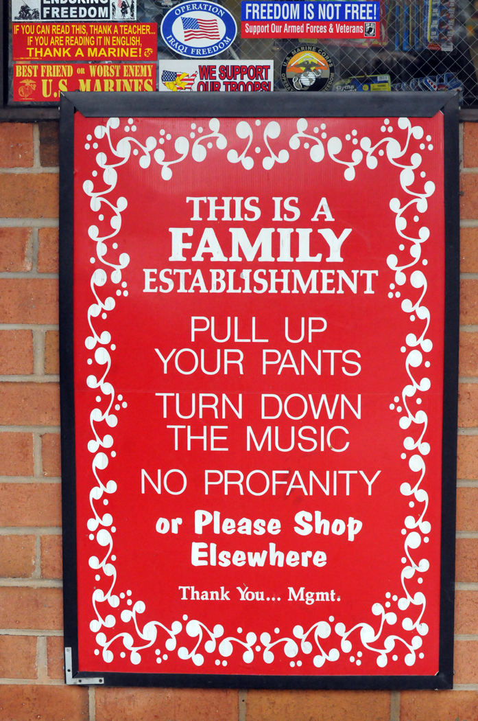 The sign that greets all visitors to the Grocery Boy Jr. store.