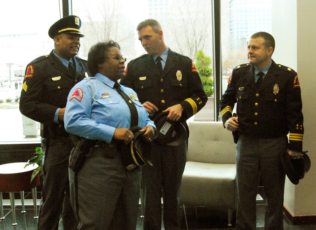 Chief Deck-Brown hangs out with fellow policemen before Friday's swearing-in ceremony.