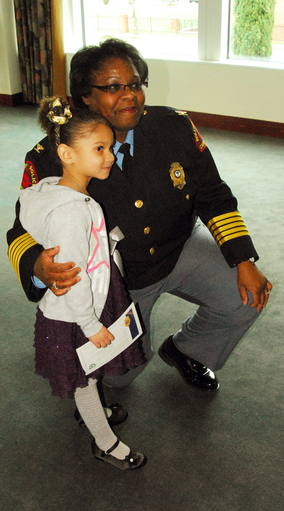One of the smallest to greet the new Police Chief was Naleighna Foy, 4. of Raleigh.