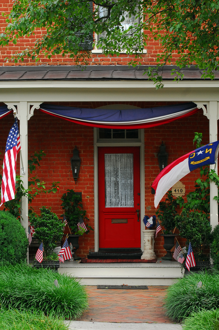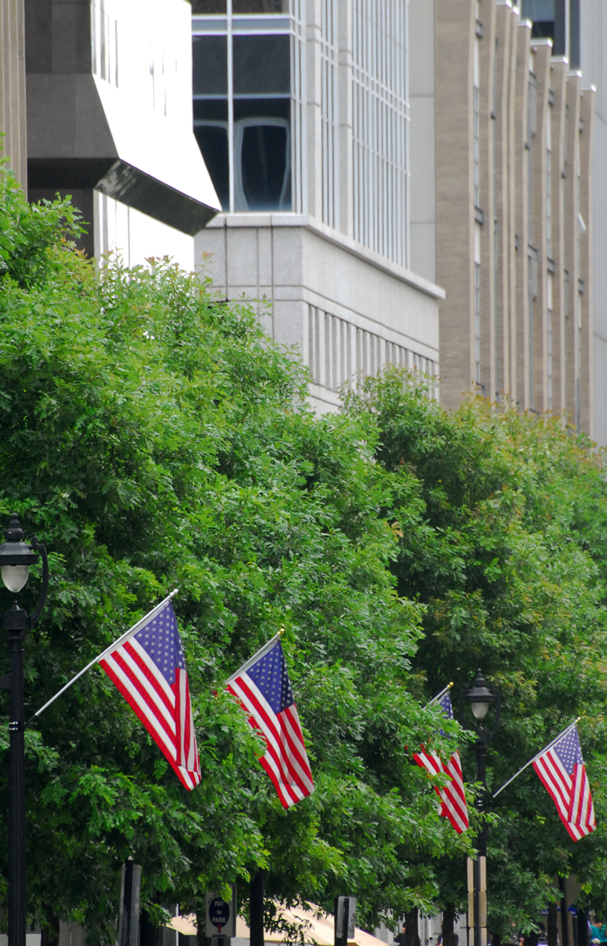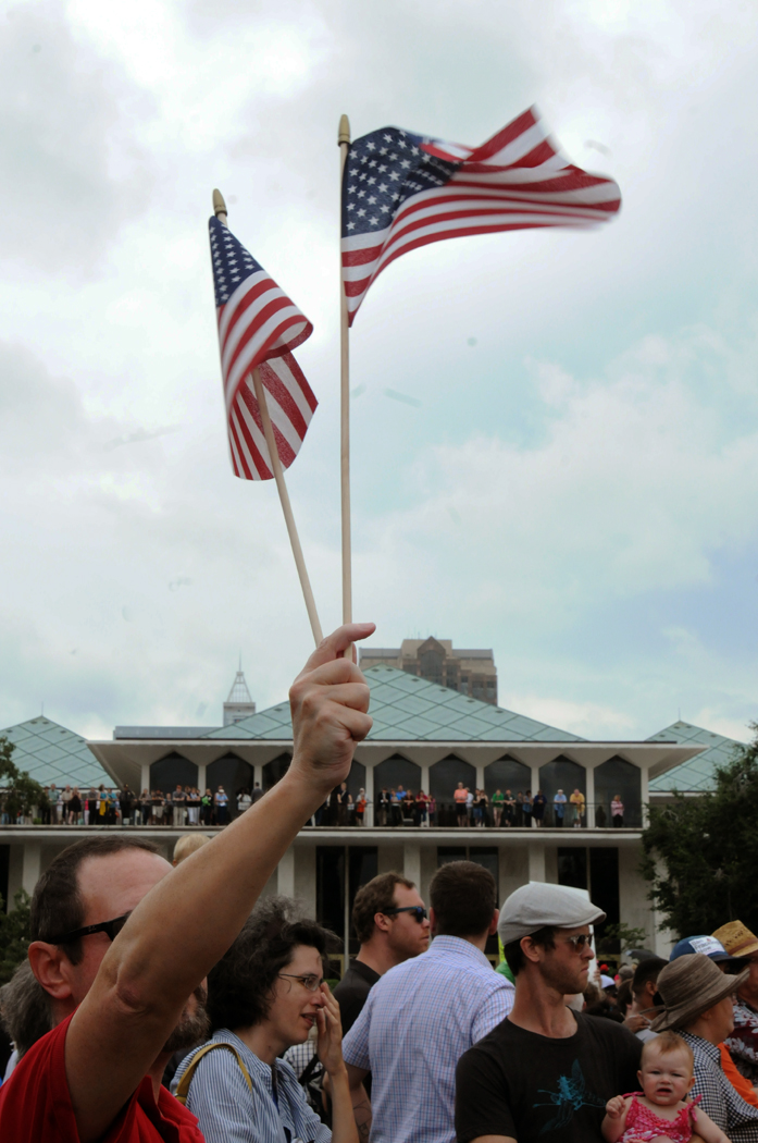 Flags held high at Week 9 of Moral Mondays with Legislative Building in background.