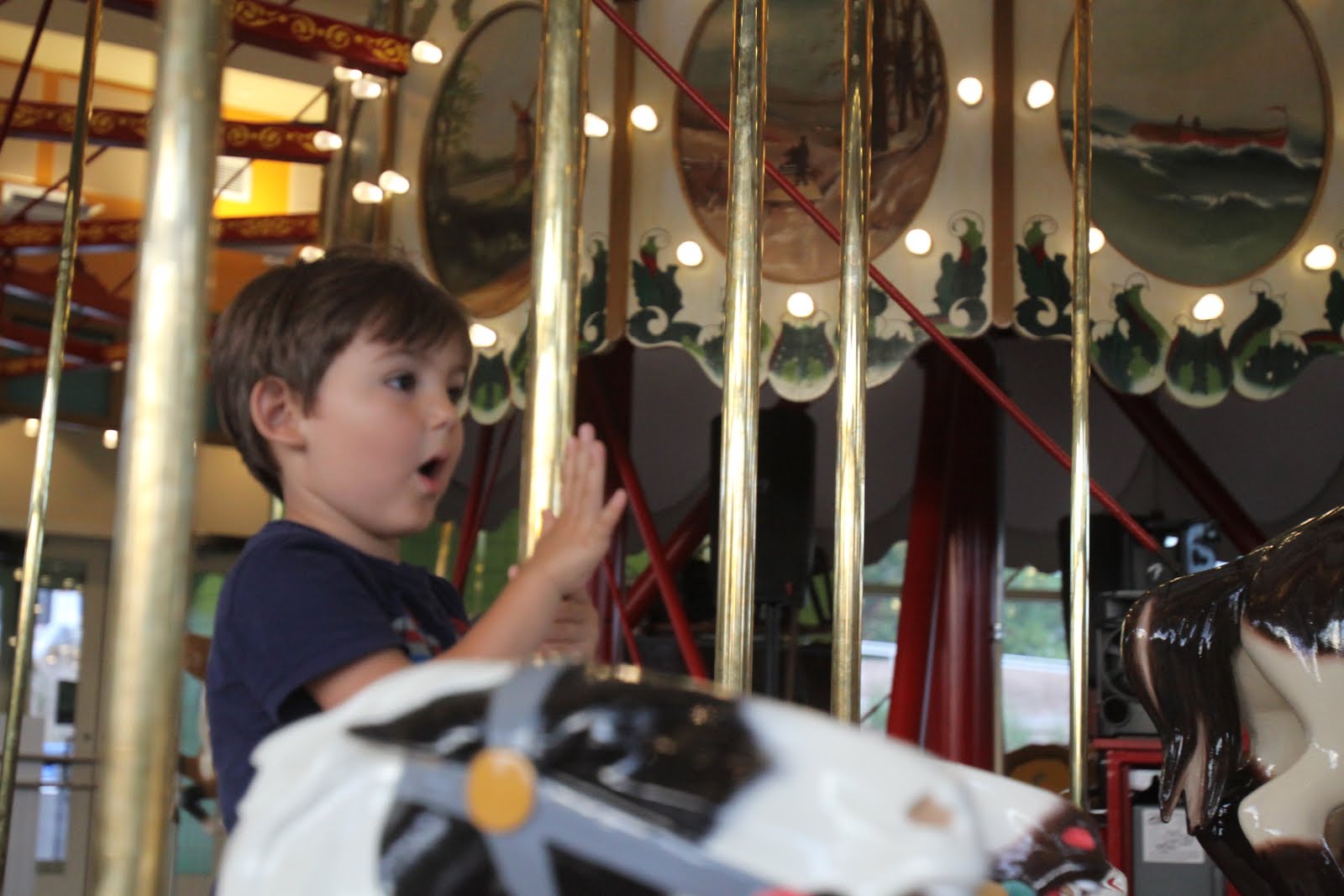 A boy rides the Chavis Park carousel. The park offered free rides all day on July 4.