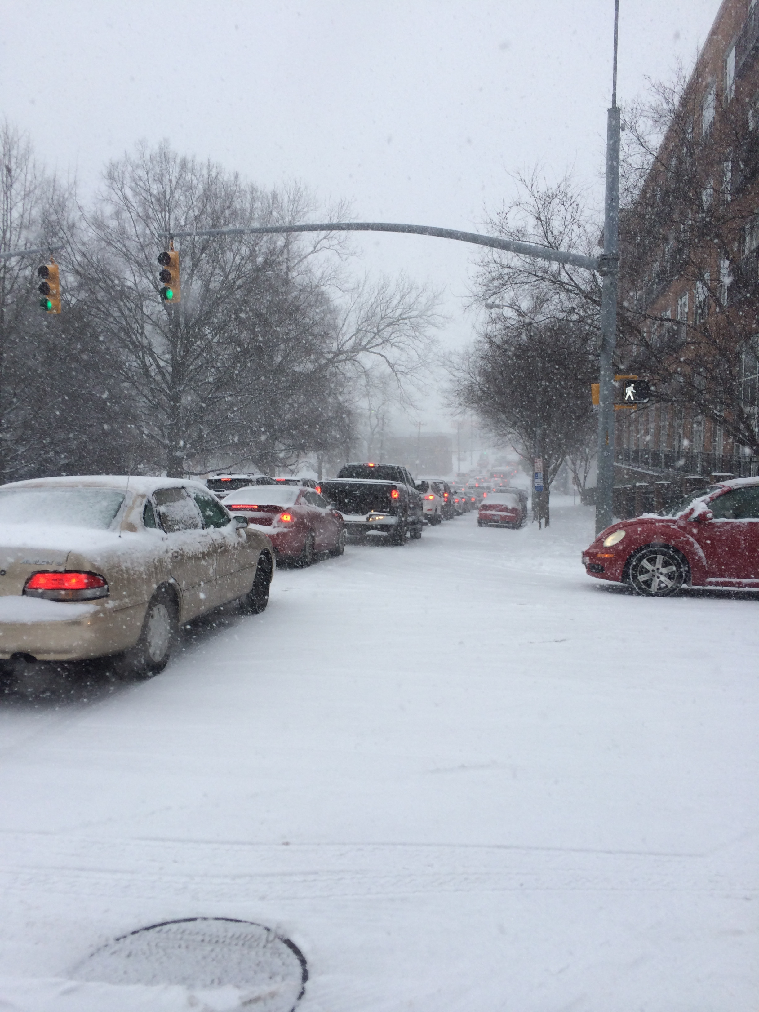 Many cars were stuck in gridlock downtown during the recent snowstorm, seen here on Dawson Street near City Hall.