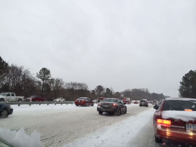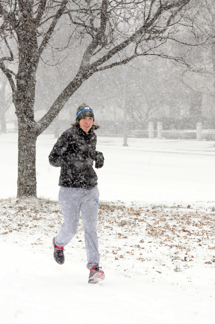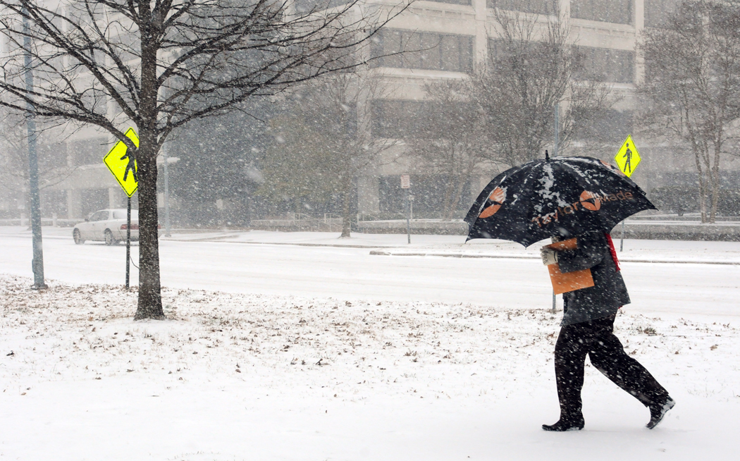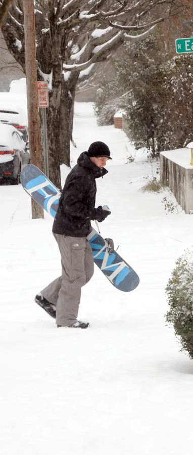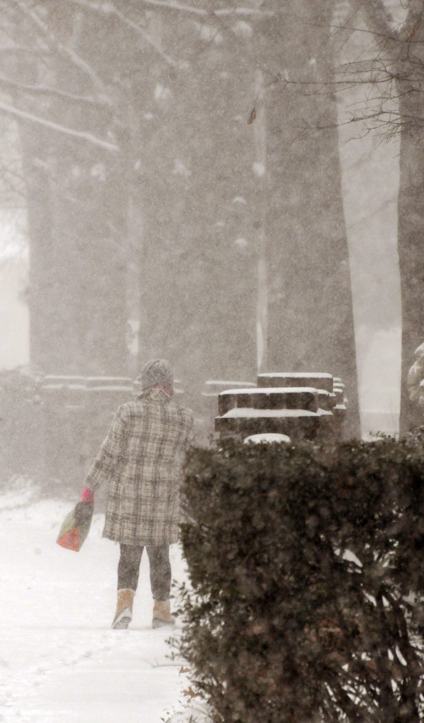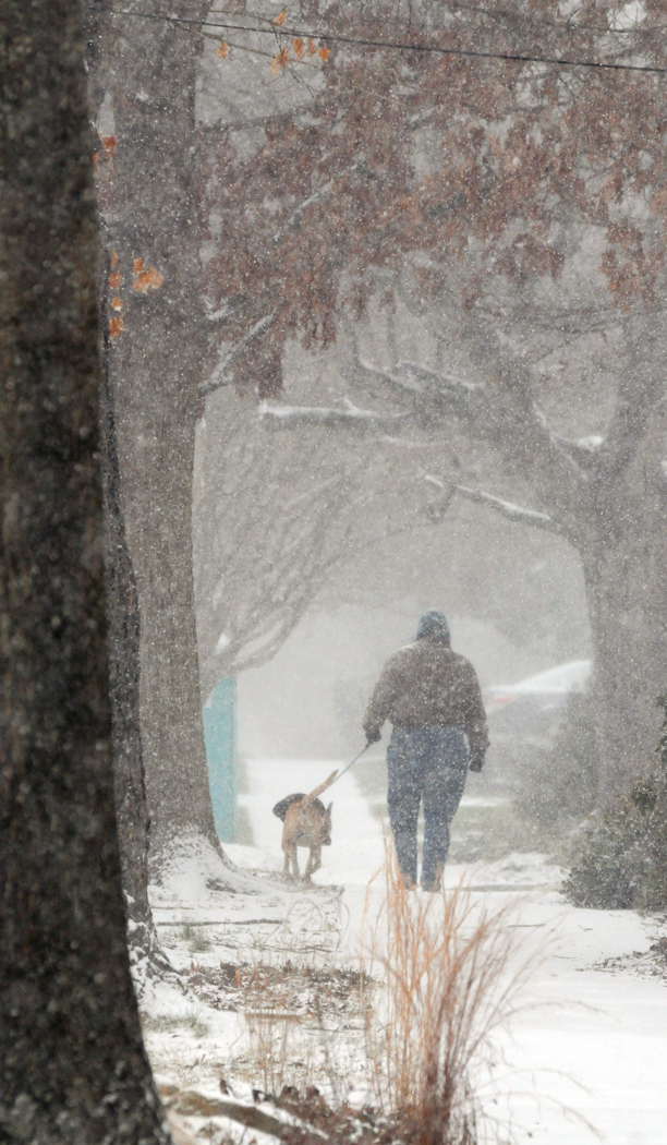 Walking was the only way to go Wednesday afternoon. These people walk across North Boundary Street.