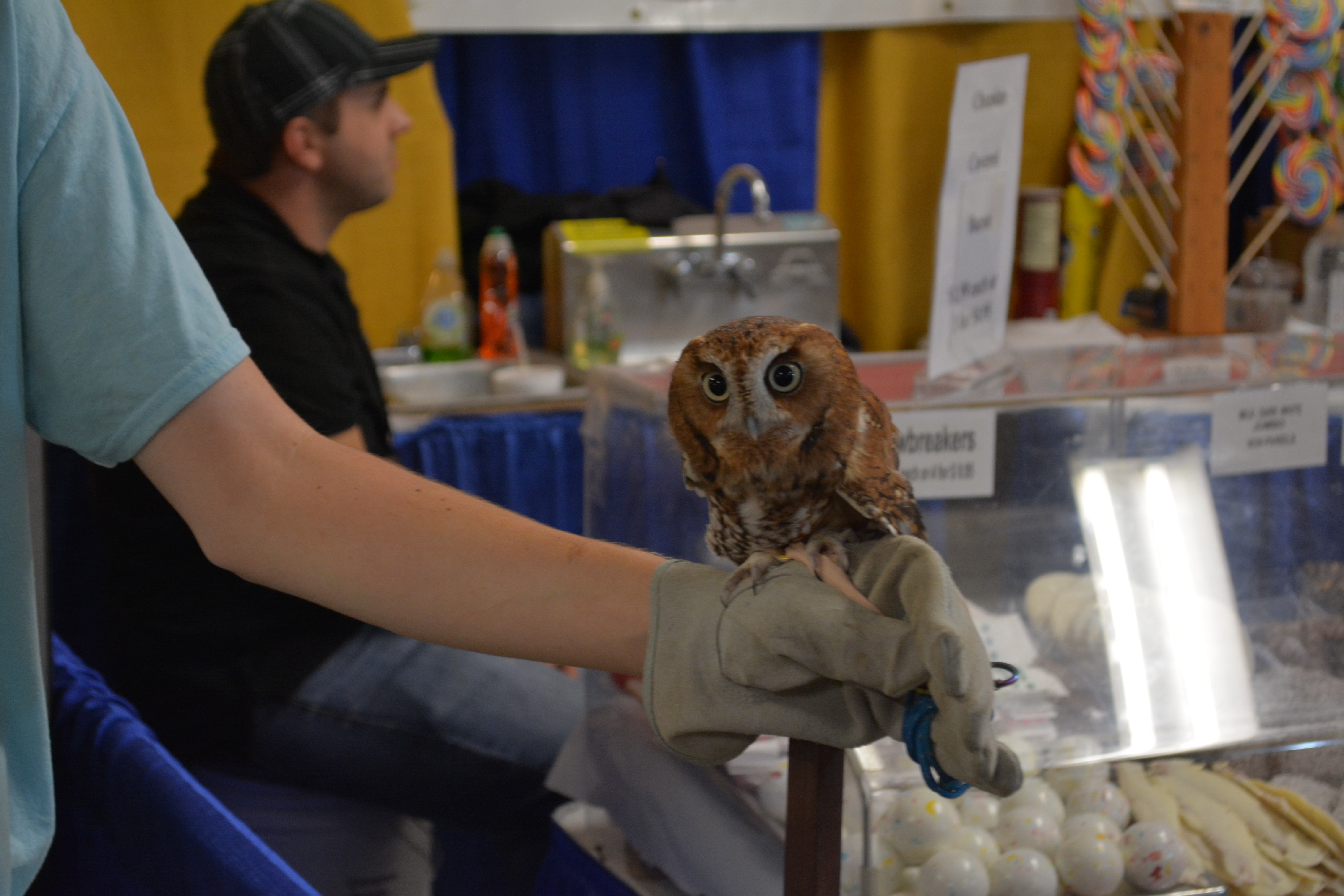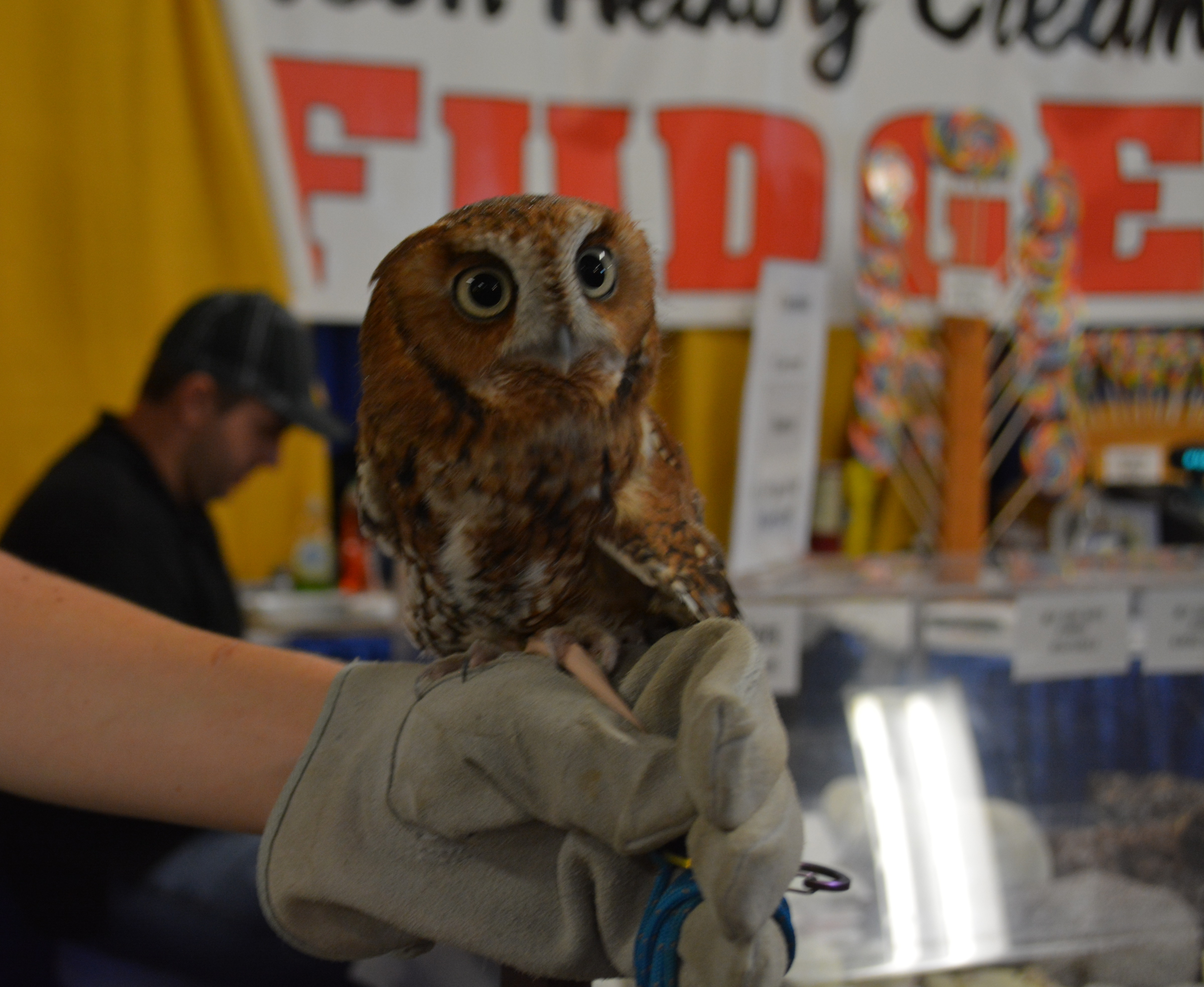 Although there’s plenty of animals to be seen at this year’s State Fair, it’s Otus the Owl who steals the show. Otus is on hand – literally, on a hand – at the booth for the Forest Foundation, which rescued an injured Otus, who can no longer fly. Otus, an eastern screech owl, can be found in the Commercial Building.