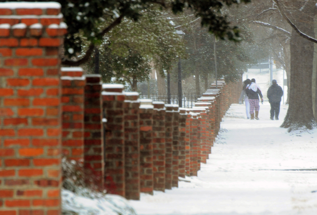 Raleighites braved the snow Tuesday along the Peace College fence down Blount St. near downtown Raleigh.