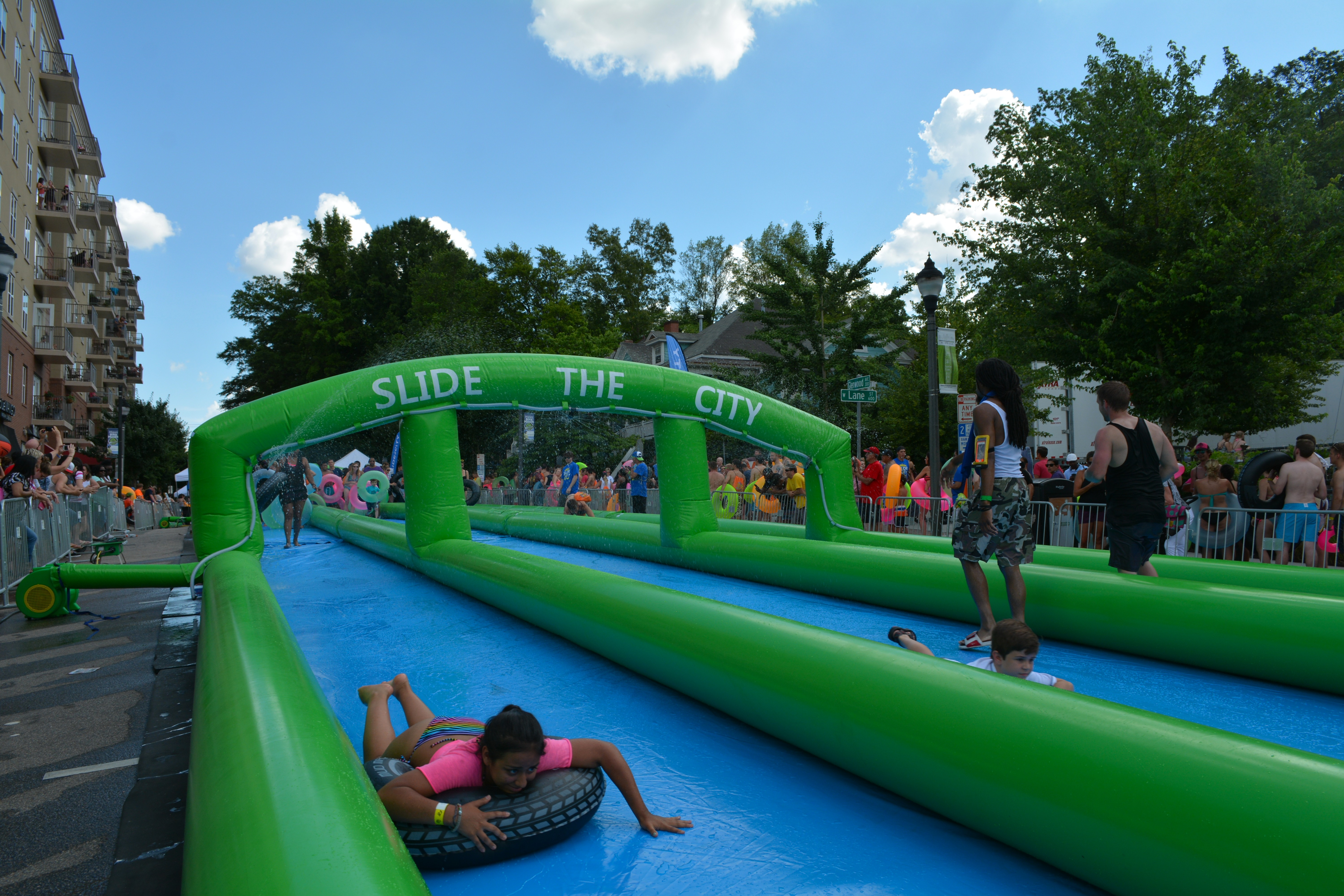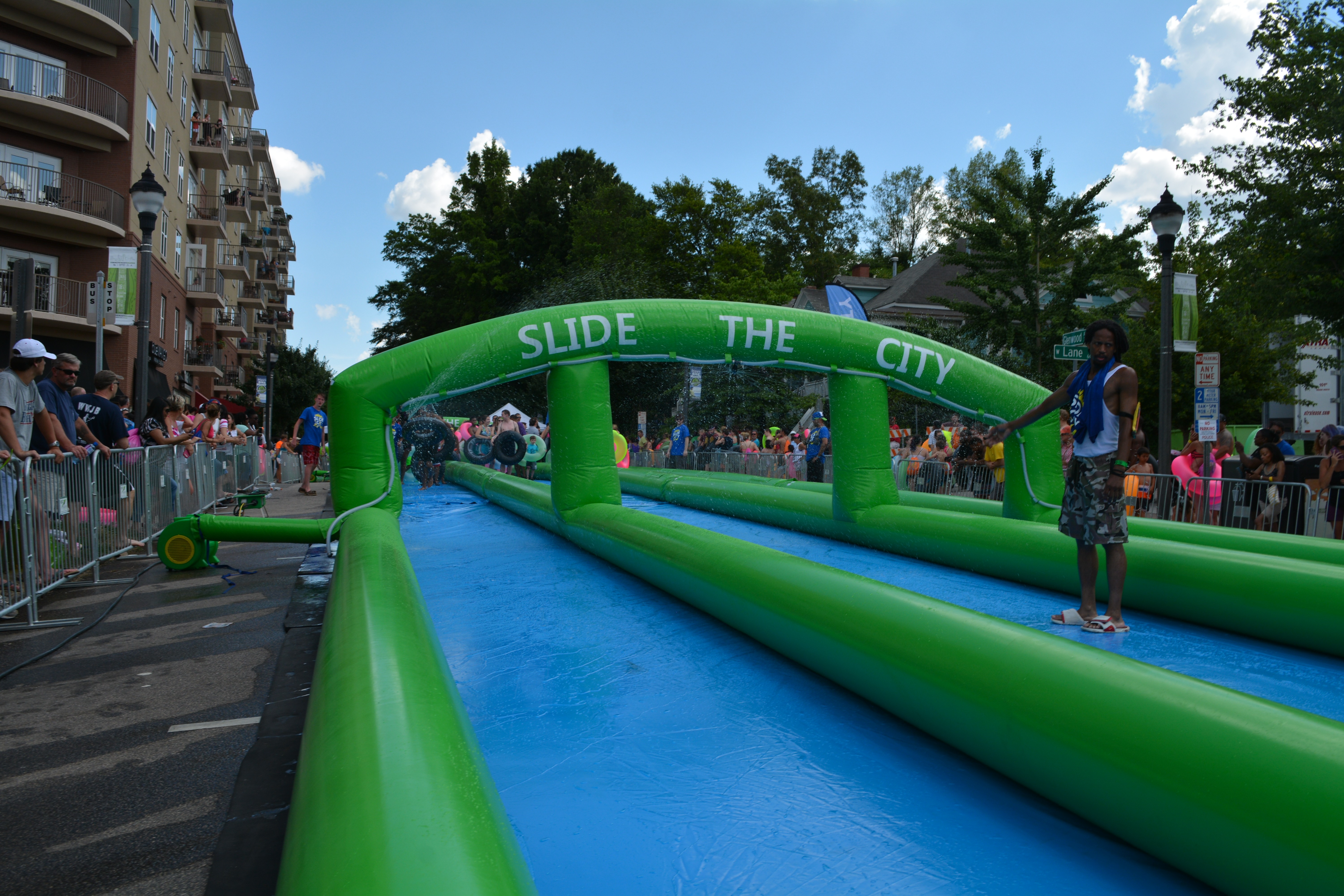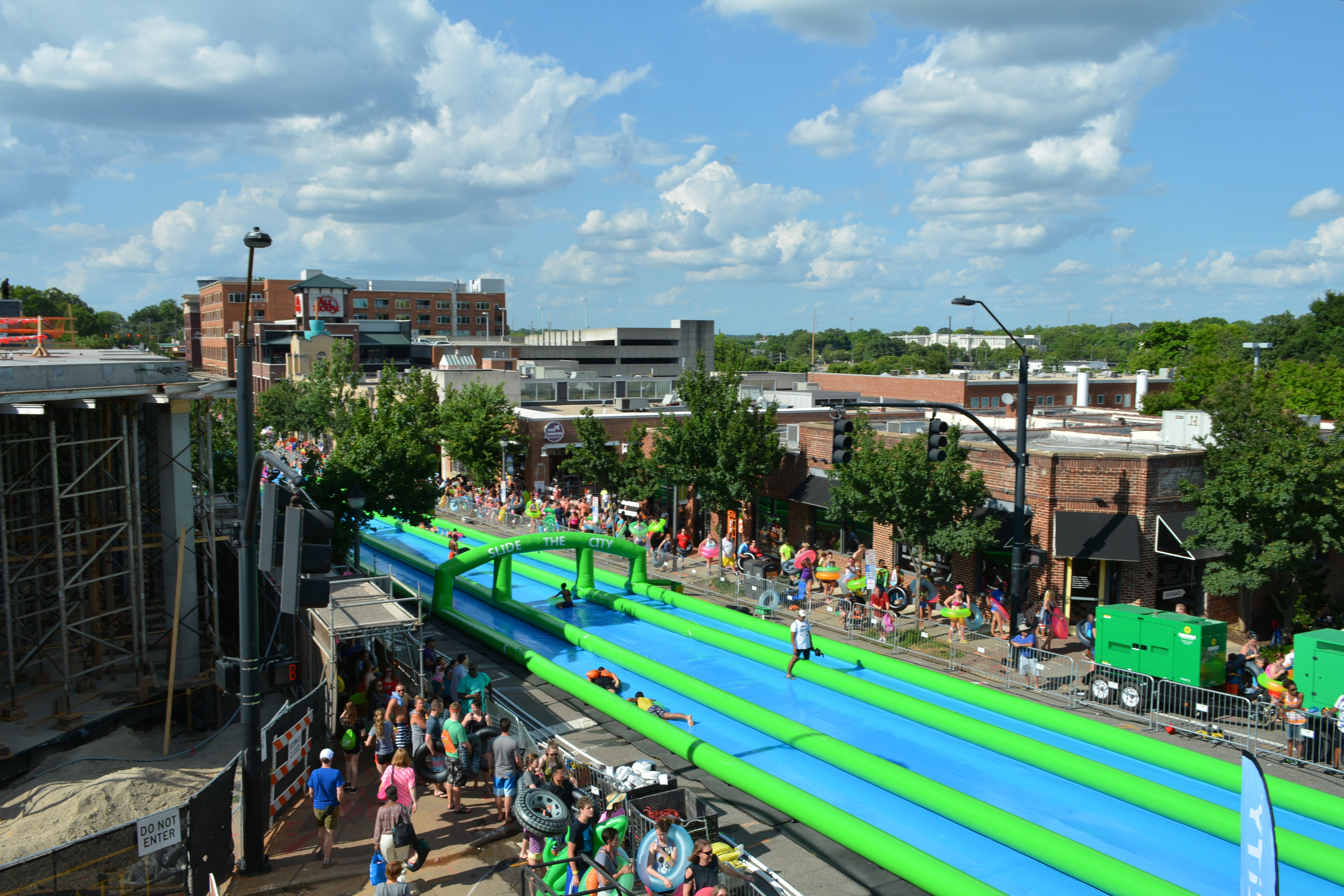 Glenwood Avenue was mobbed with Slide the City participants, a boon for local businesses