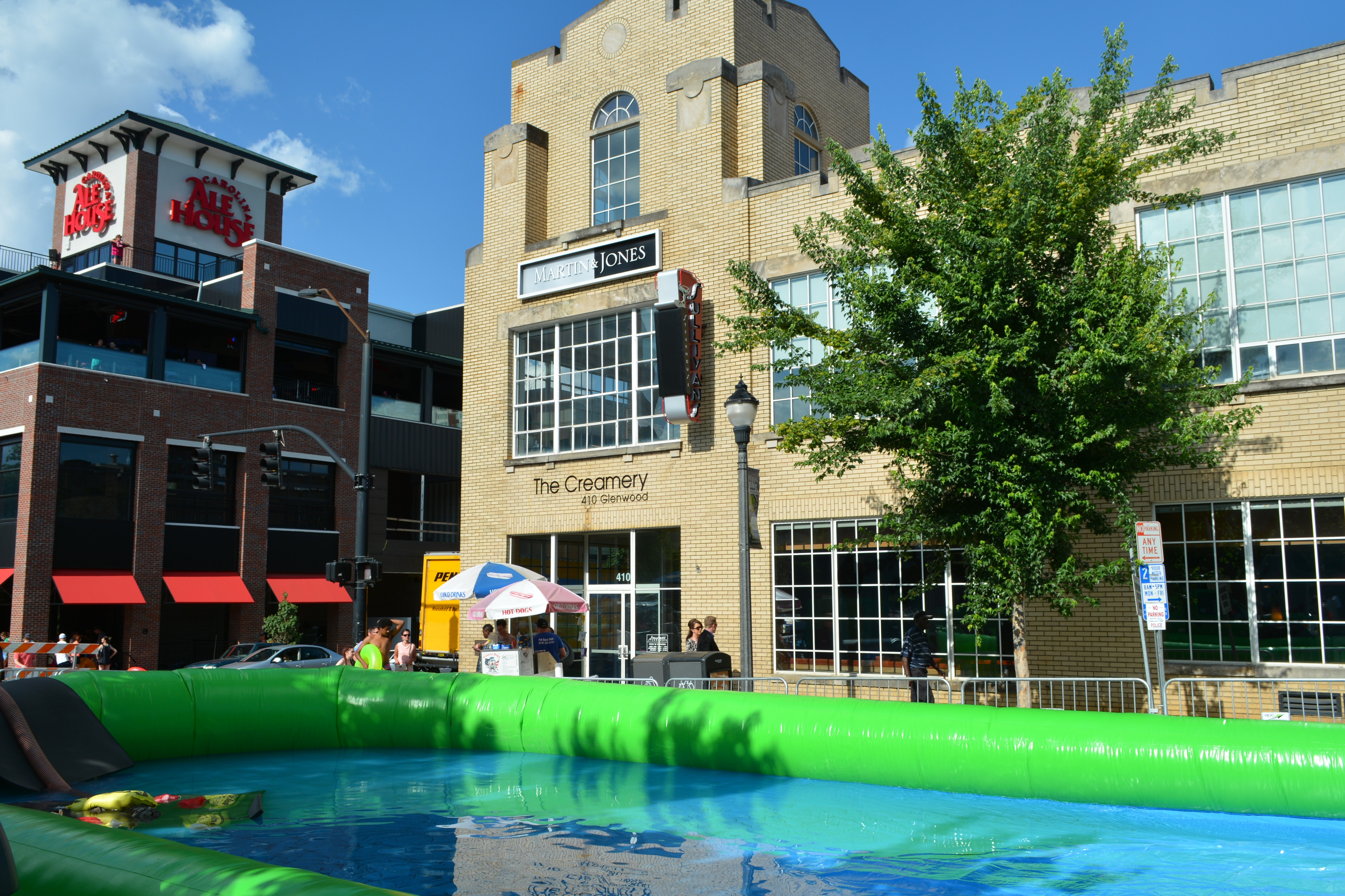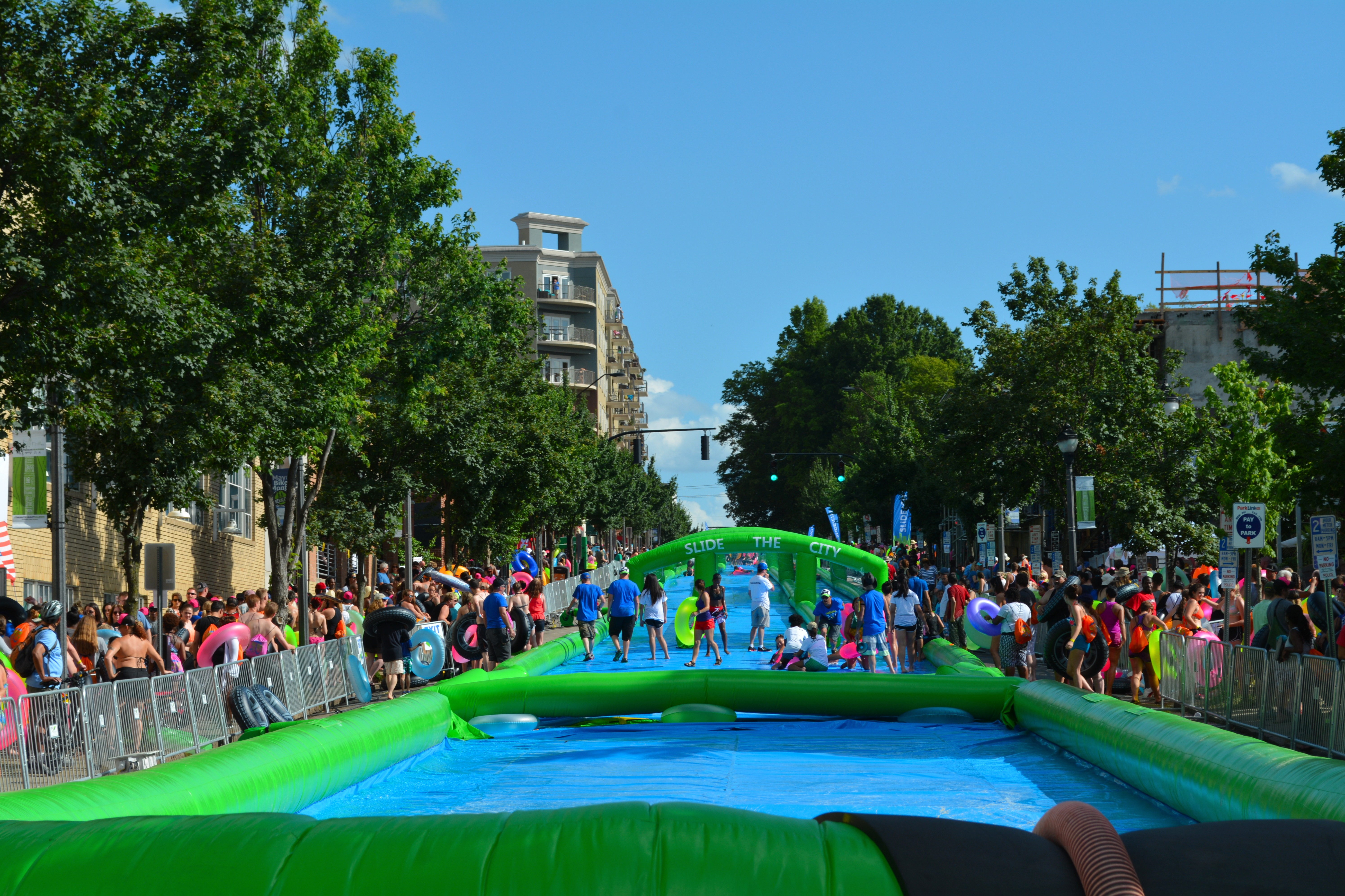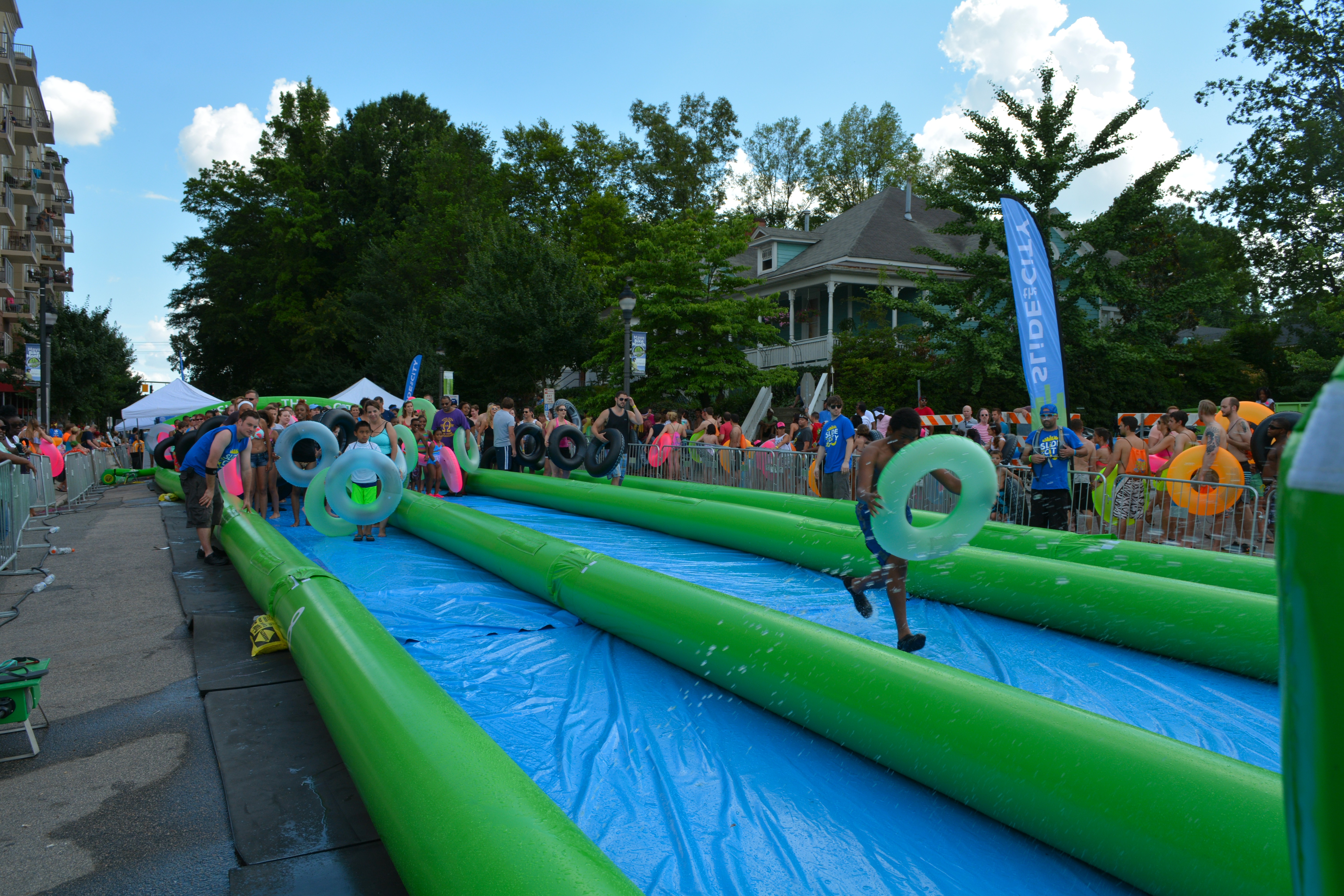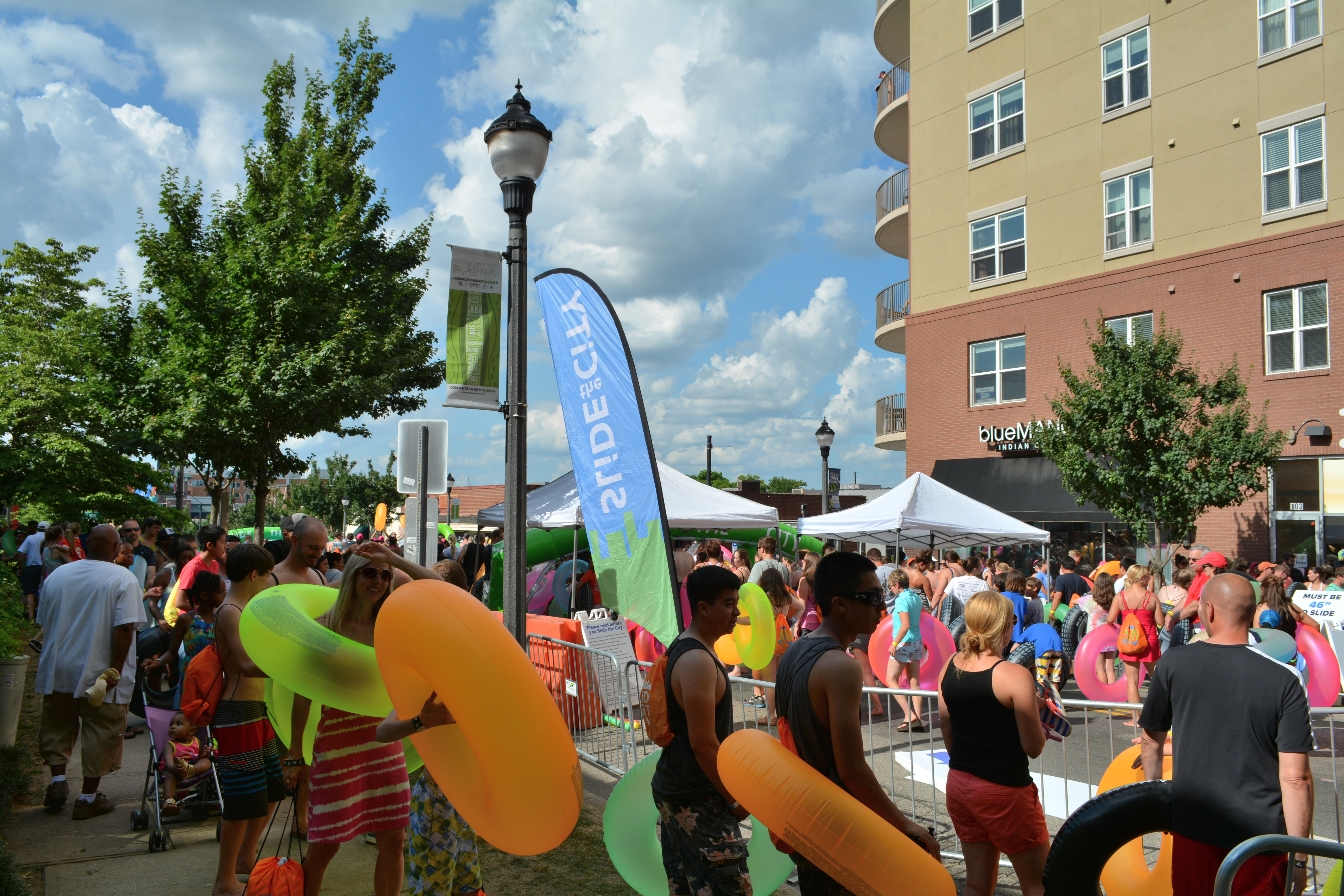 Glenwood Avenue was mobbed with Slide the City participants, a boon for local businesses